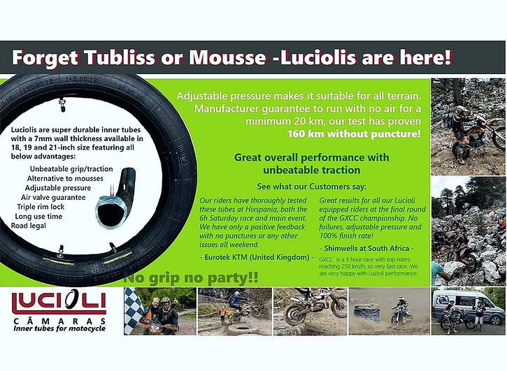 Zaradi debeline in posebnih zmesi se lahko pnevmatike Lucioli uporabljajo pri nizkem tlaku ali celo predrtih (učinek runflat), tako da lahko končate krog in se vrnete domov popolnoma varno, ne da bi poškodovali komoro ali pnevmatiko.