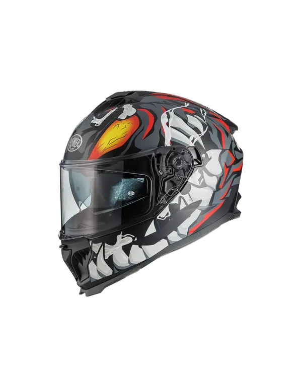 • Polikarbonatni vizir, odporen proti praskam, s posebnim sistemom zaklepanja, ima tudi temen skrit notranji vizir, ki omogoča vožnjo v vseh vremenskih in svetlobnih pogojih.