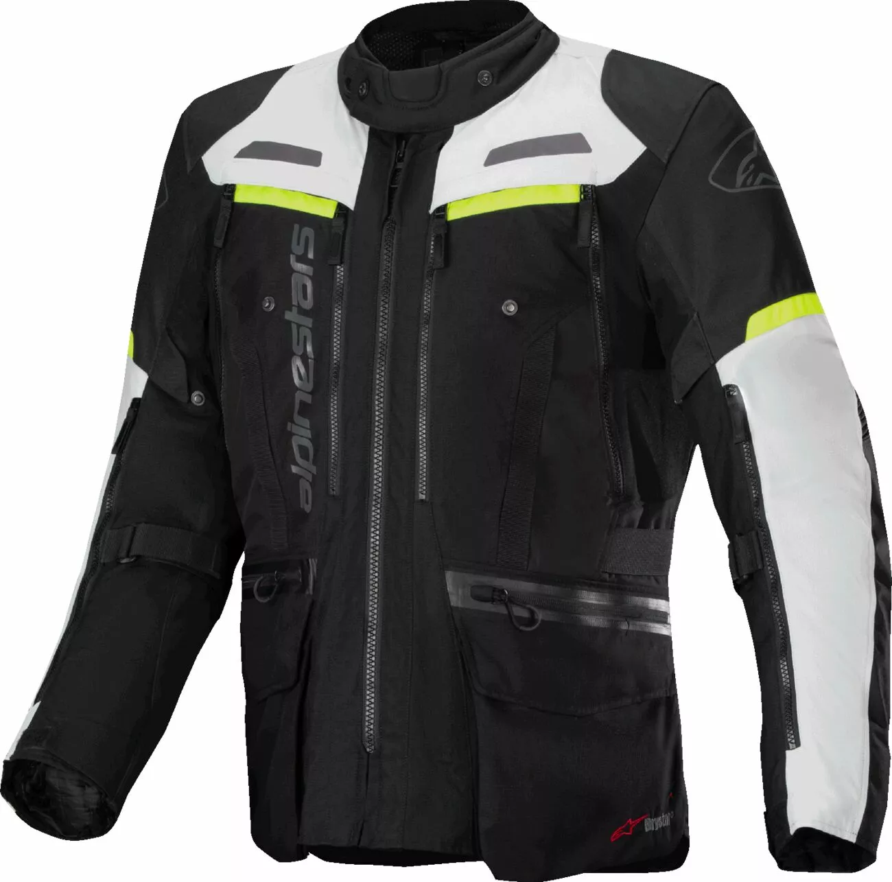 - Vodoodporna motoristična tekstilna jakna Alpinestars Bogota Pro Drystar®Celoletna jakna Bogotá Pro Drystar® Jacket je bila zasnovana tako, da zagotavlja optimalno zaščito, odpornost na vremenske razmere in udobje ter uporablja Alpinestarsovo membrano Drystar® za 100-odstotno vodoodpornost in zračnost. Troslojni sistem ‘liner to drop’ omogoča, da jopič prilagodite pogojem, hkrati pa je hiter in enostaven za uporabo. Bogotá ima obsežne prezračevalne plošče na prsih, celotnem hrbtu in rokah za učinkovit nadzor klime v vseh pogojih. S konstrukcijskega vidika ima 3D ergonomsko obliko, ki zagotavlja, da je zelo prilagodljiv in prezračen ter vključuje tehnično podlogo Drystar®, ki zagotavlja vrhunsko zračnost in izjemno učinkovitost v mokrem vremenu. Pravzaprav lahko podlogo Drystar® nosite čez ali pod glavno zunanjo lupino za praktičnost in vsestranskost v resničnem svetu. Jakna Bogotá Pro Drystar® se prilagaja vsem potrebam jahanja in je idealna podloga za celoletno jakno. Jakna ima obdelavo DWR (Durable Water Repellent) za učinkovito delovanje v vseh vremenskih razmerah in vrhunsko udobje v vseh vremenskih razmerah, mokrih ali suhih – zasnovana tako, da zagotavlja, da zunanja lupina vedno ostane suha, z Bogotá se poslovite od mokre opreme.Lastnosti: