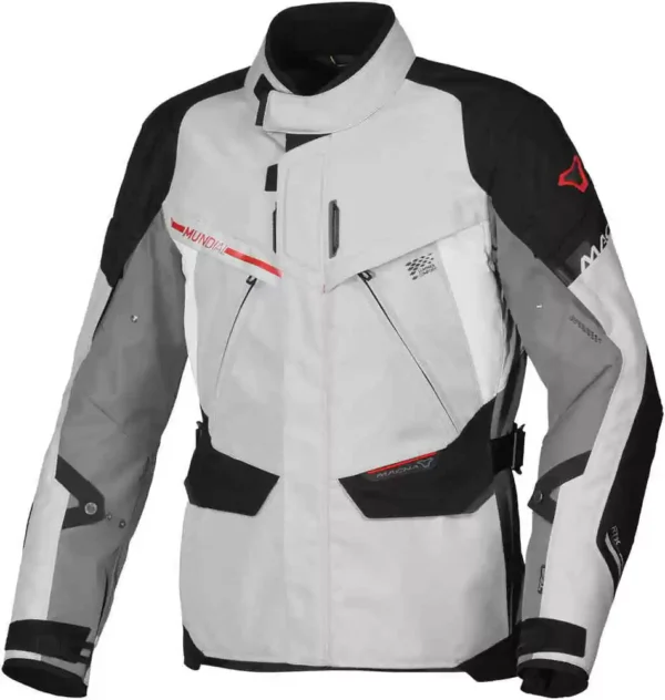 - nepremočljiva motoristična tekstilna jakna Macna MundialMundial iz Macne je idealna touring jakna za vse vremenske razmere. Vodoodporna odstranljiva podloga in odstranljiva termo podloga vas ohranjata suhe in tople. Ko se temperature dvignejo, prezračevalni vložki poskrbijo za optimalno kroženje zraka. Poleg tega ščitniki Level 1 na ramenih in komolcih ter odsevni elementi zagotavljajo visoko raven varnosti. Jakno je še vedno mogoče naknadno opremiti s ščitnikom za hrbet (na voljo kot opcija).Lastnosti: