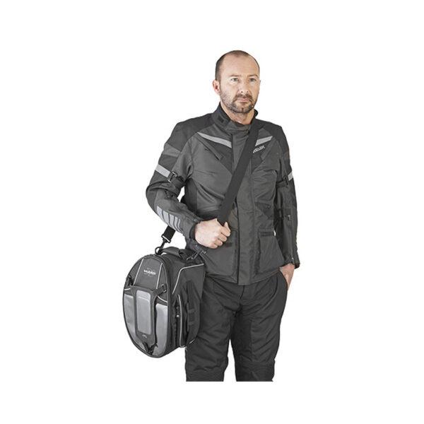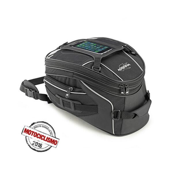 Torba za montažno na rezervoar z sistemom za pritrditev TANKLOCK. Sistem TANKLOCK deluje z pomočjo dveh komponent – pritrdilni sistem kateri je specifičen za tip motorja (pritrditev na že obstoječe vijake) in spodnjim delom torbe kateri je enostaven za namestitev in odstranitev iz spodnje plošče katera je fiksno montirana na rezervoarju. Spodnja komponenta katera je specifična za motor se prodaja posebaj.